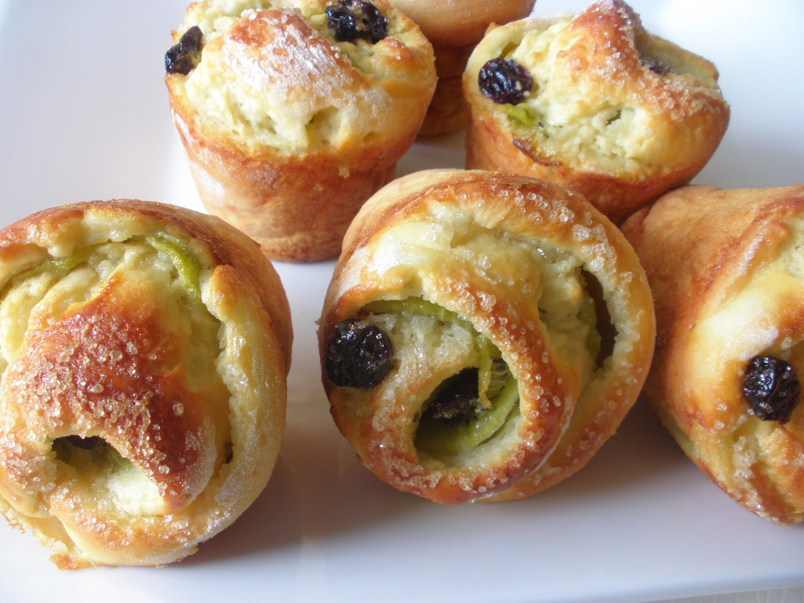Порой,хочется придумать что-то новенькое…Дрожжевое тесто послушно и легко вступает в игру с вашей фантазией.К тому-же,оказалось много киви в фруктовнице…В результате,получились вкусные,необычные булочки-выкрутасы.