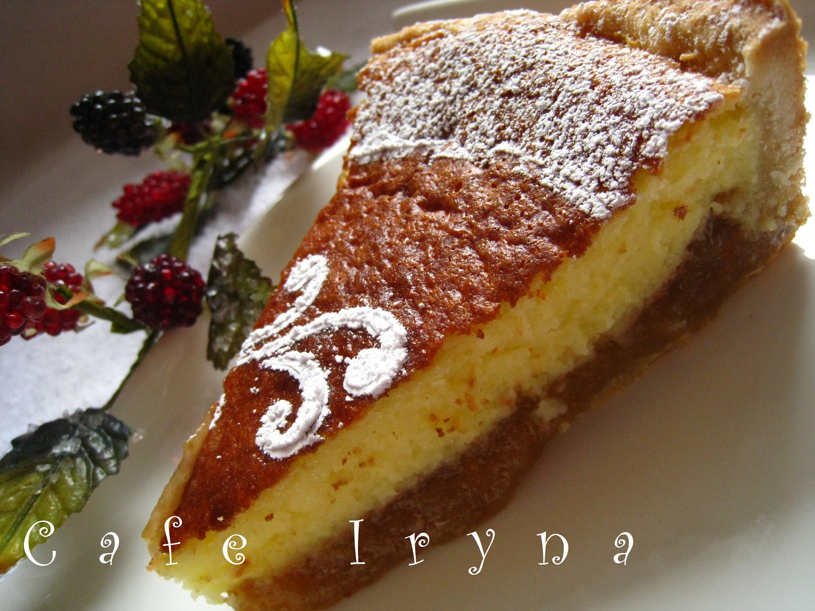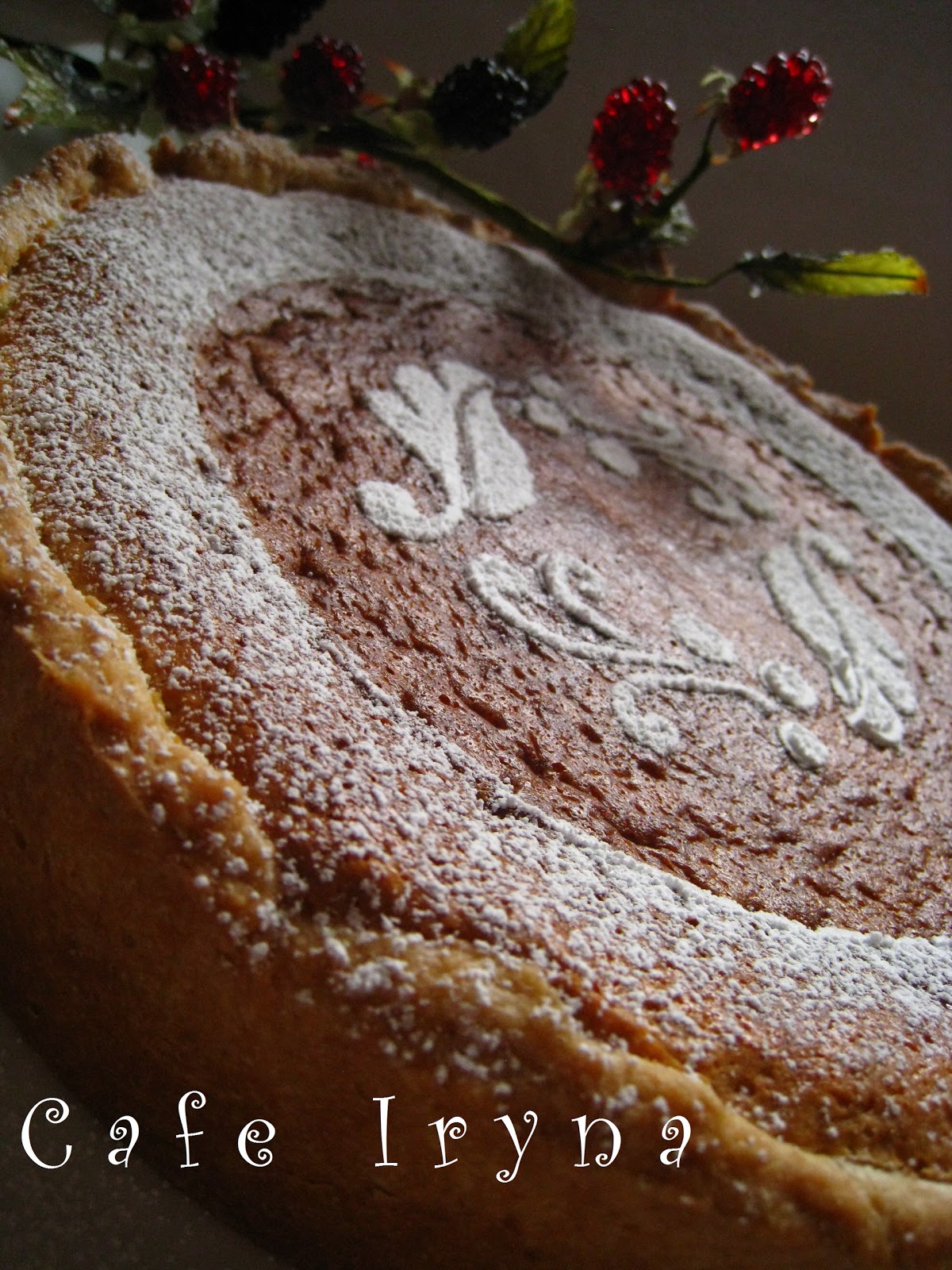 Суть пирога-песочная корзинка наполненная яблочным пюре и сметанным суфле.