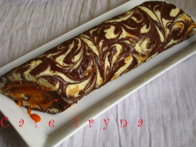 Через 10-15 минут остывший рулет развернуть и смазать абрикосовым джемом