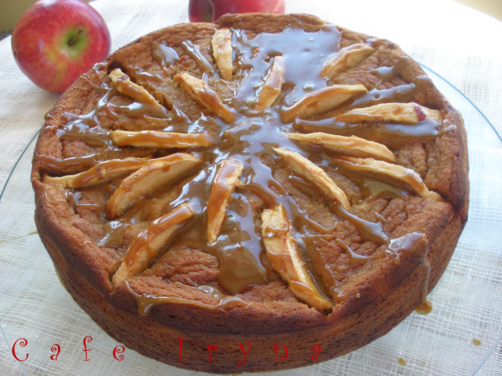 Теплый пирог аккуратно вынуть из формы,полить карамелью