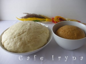 Теперь,нужно вымесить каждое тесто,подбавляя муку и оливковое масло в большую порцию 1 столовую ложку,а вменьшую-чайную