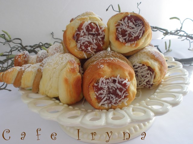 Итак,спиральные ракушки из дрожжевого теста с кофейным вкусом и начинкой из кураги,сваренной в красном вине.
