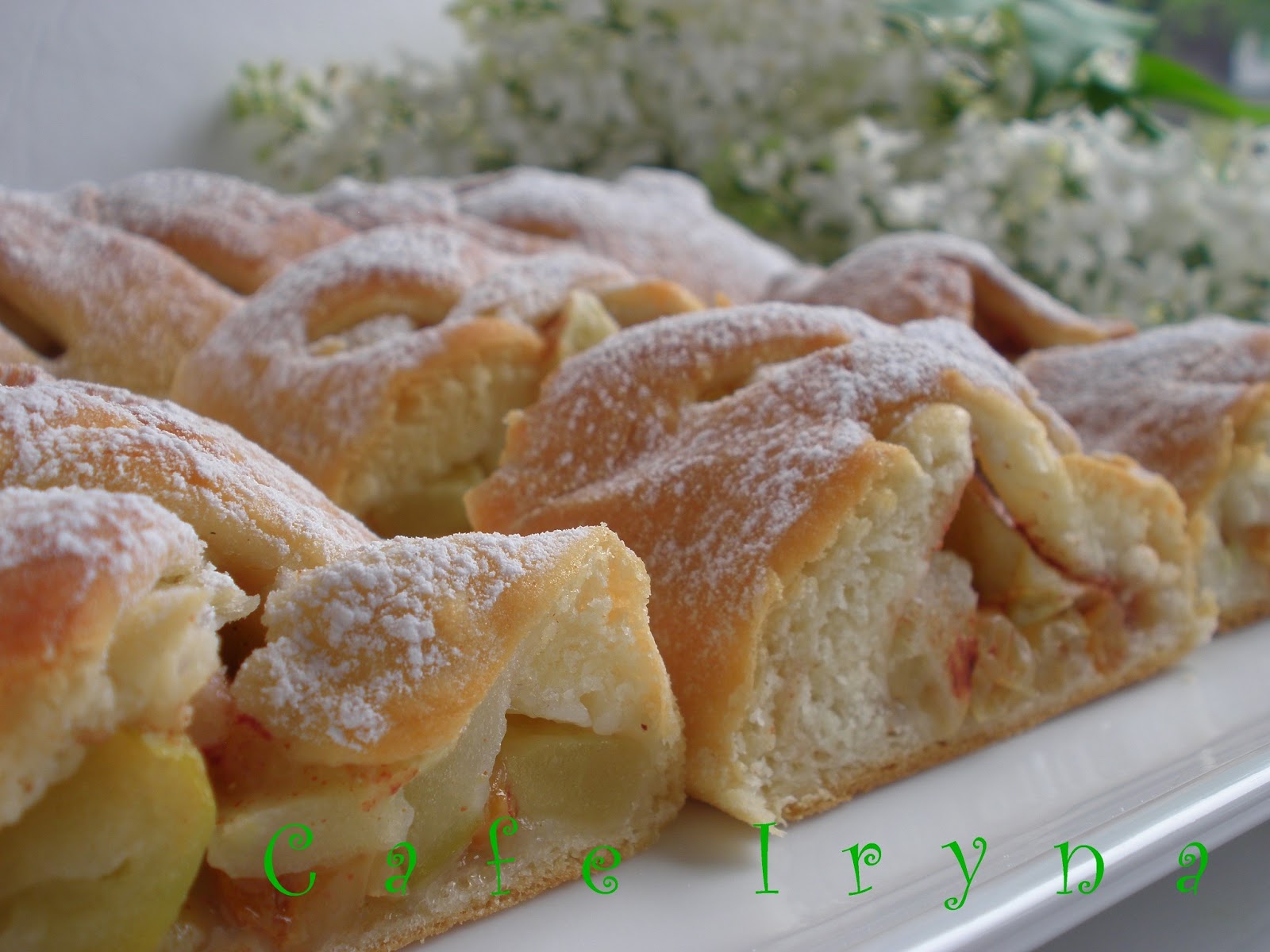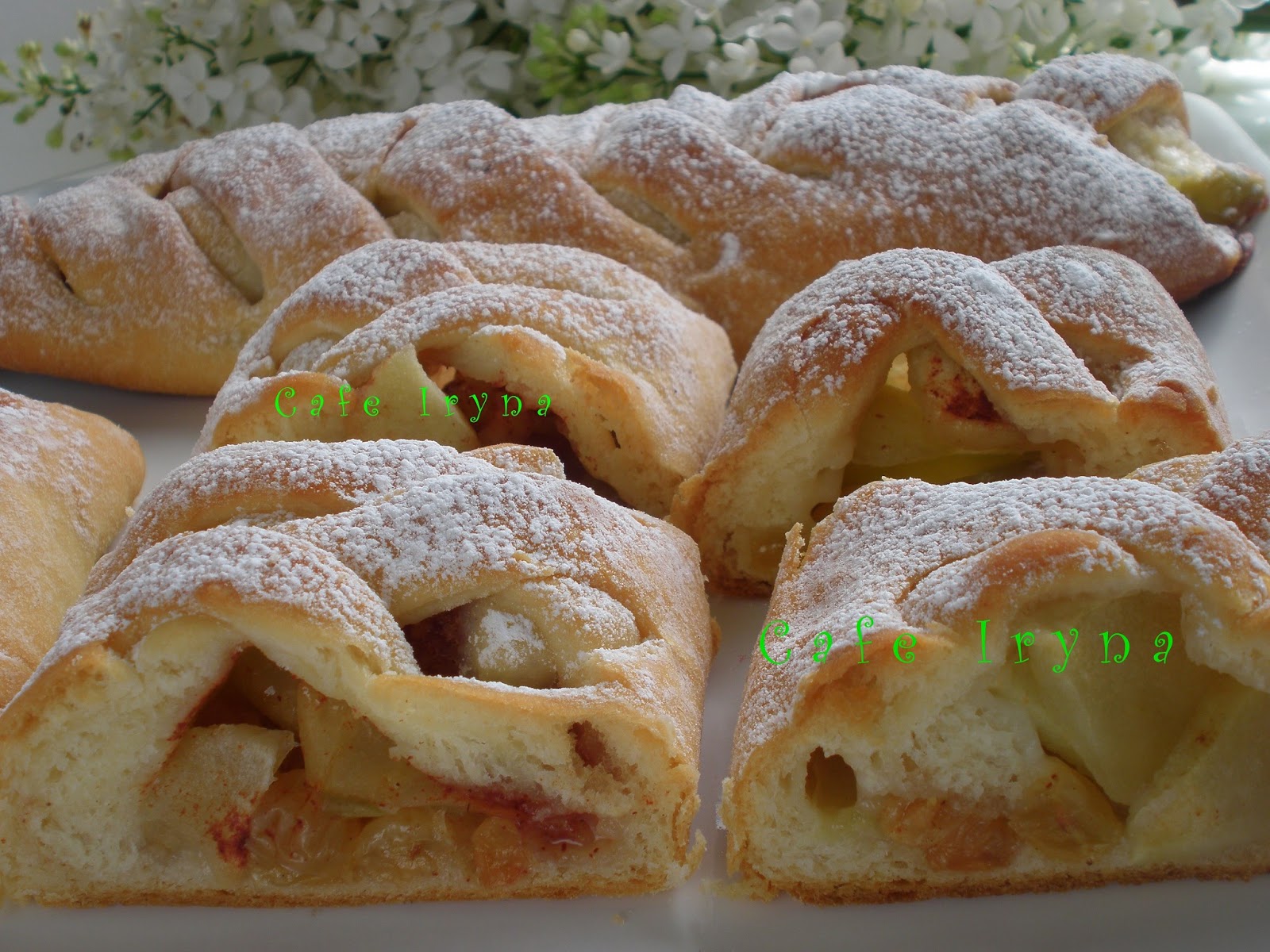 Теплые пироги обильно посыпать сахарной пудрой через сито
