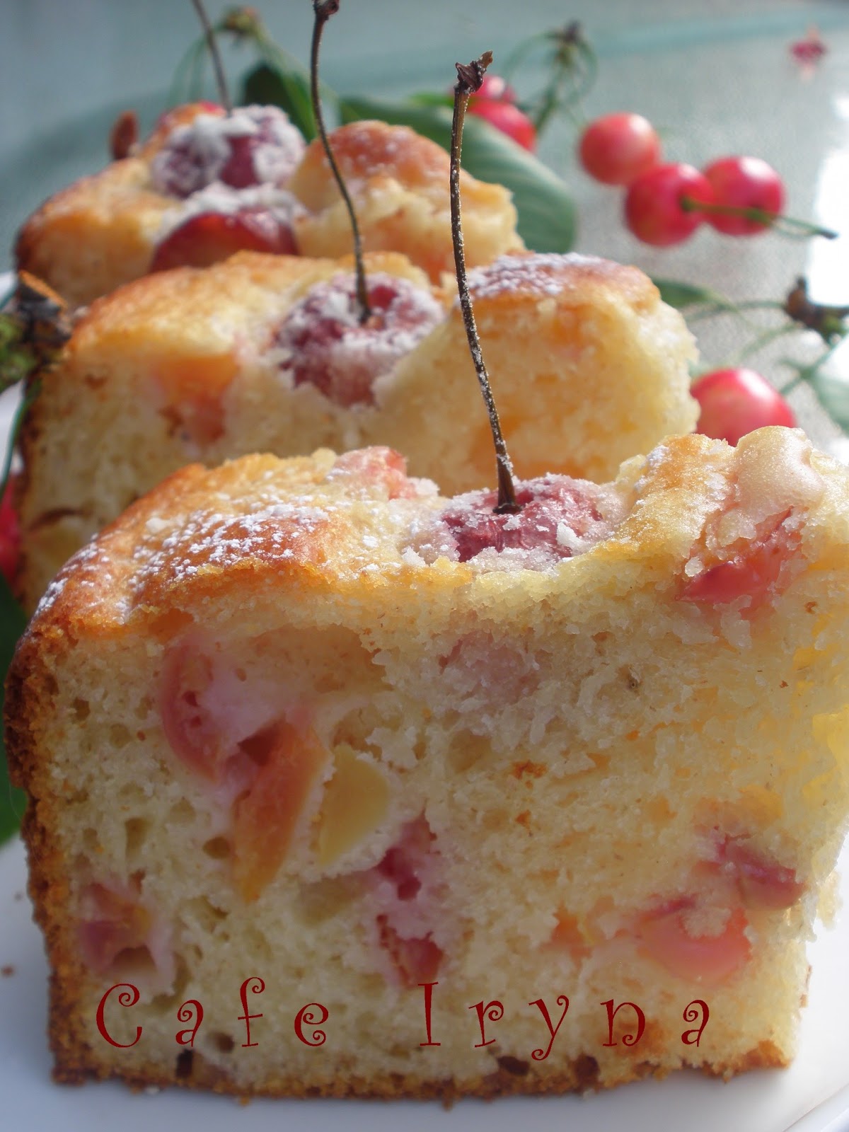 Добавить черешню.предварительно порезав ее на 4-5 частей