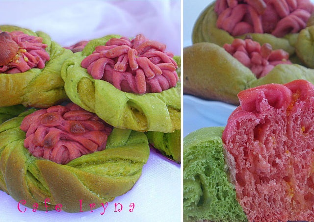 Эти булочки не давали мне покоя,виделись красочные картинки…В сыром виде они выглядели просто ошеломляюще,яркие краски и четкие линии…Это первая попытка осуществить сладкую дрожжевую выпечку на ягодном соке.Возможно,добавление яйца «подпортило» картину яркости красок,не уверена.Но вкус меня удивил и порадовал душистым запахом ягоды и легкостью теста.