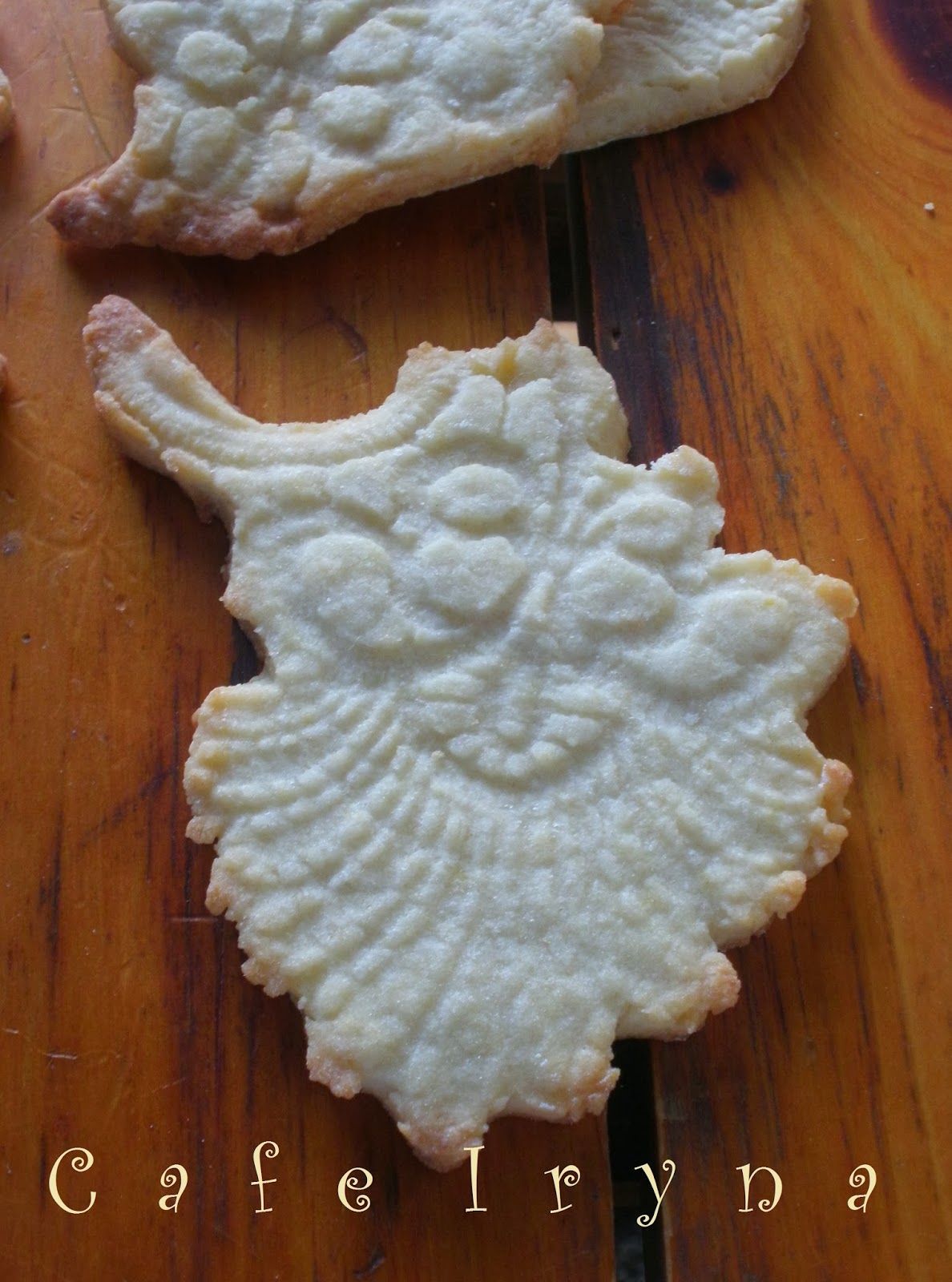 Обычное сахарное печенье,но с красивым оттиском и в домашних условиях.Тут ваша фантазия играет,что есть под рукой для воплощения этой идеи…