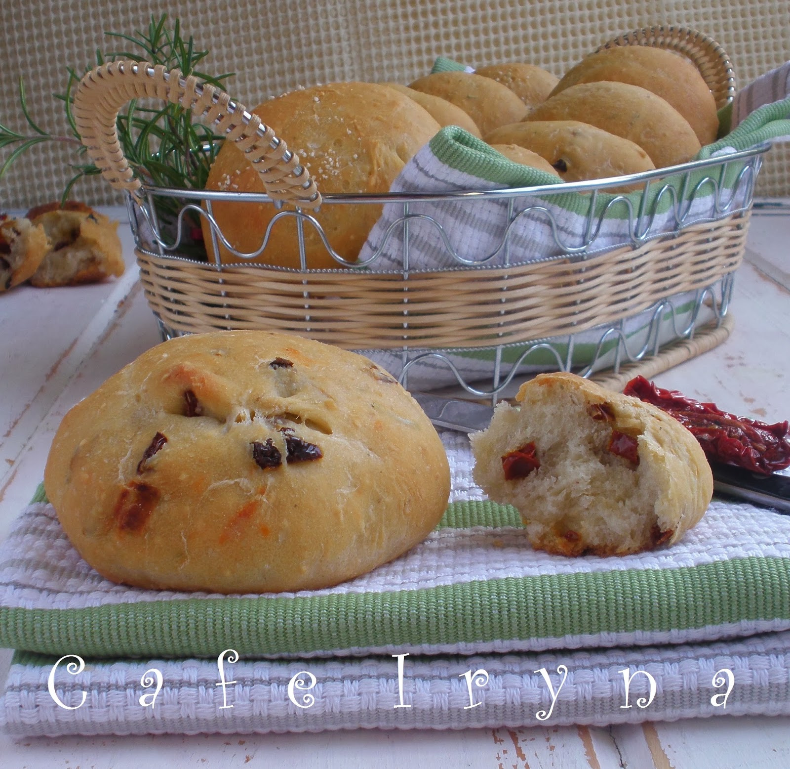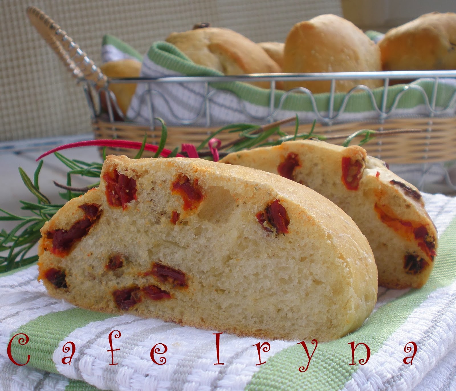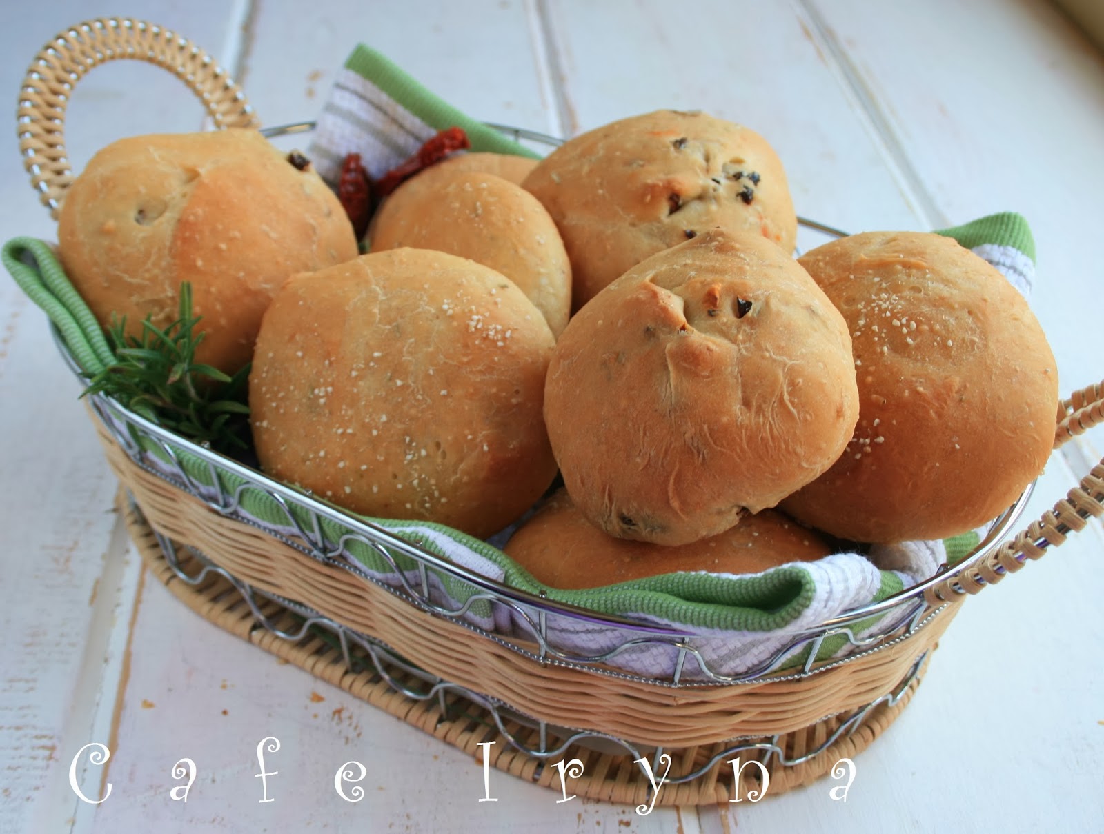 Добавила пшеничной крупы,вяленых помидор и получились душистые булки-хлебушки к обеду.