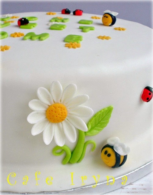 «Внутренности» торта-медовые коржи с ягодным кремом.Это восхитительное сочетание!Торт получился,нежный,легкий и красивый внутри.Отдельная благодарность Зарине Кудако за супер-идею ягодного крема!Торт  покрыт мастикой и детальки сделаны из нее же.