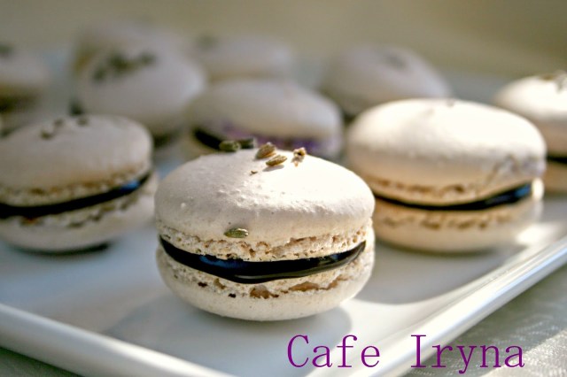 Остывшую массу поместить в кондитерский мешочек,отсадить начинку на половинки макаронс,накрыть второй половинкой