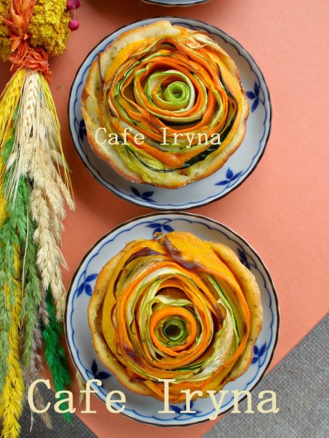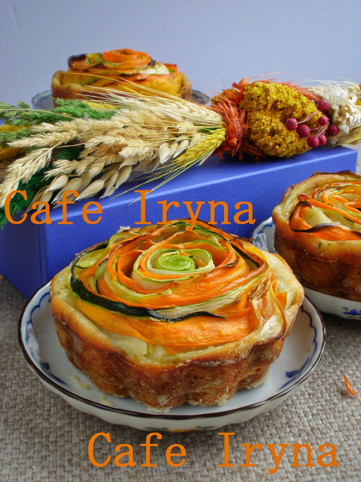 Идею увидела у Светланы Метаксы http://svetlanametaxa.blogspot.gr/2014/09/blog-post_12.html,затем-прогулялась по интернету.Маленькие кексы-моя идея,тесто сделала простое,никакой заливки.Хотелось максимум овощей-минимум теста.Смотрите,какая красота получилась…