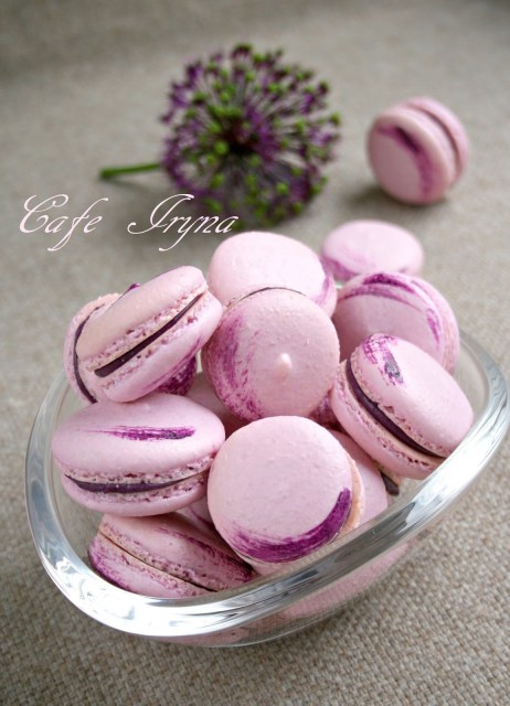 Остывший крем поместить в корнетик,нанести на половинку макаронс,склеить со второй половинкой