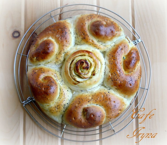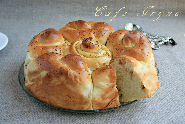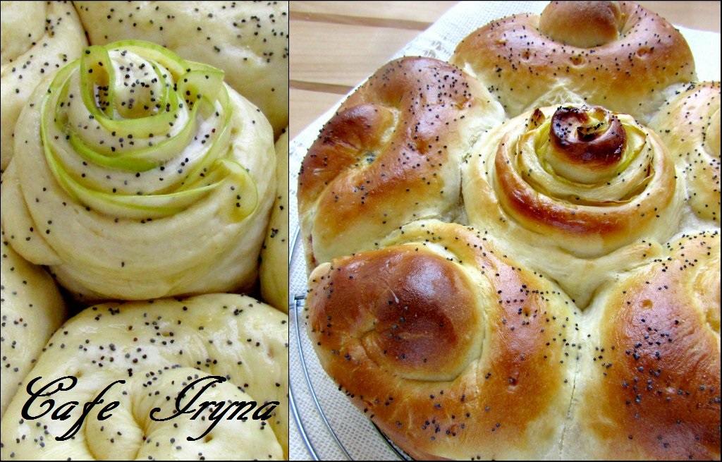 Обычное дрожжевое тесто,булка сформована из улиток с яблочной начинкой.