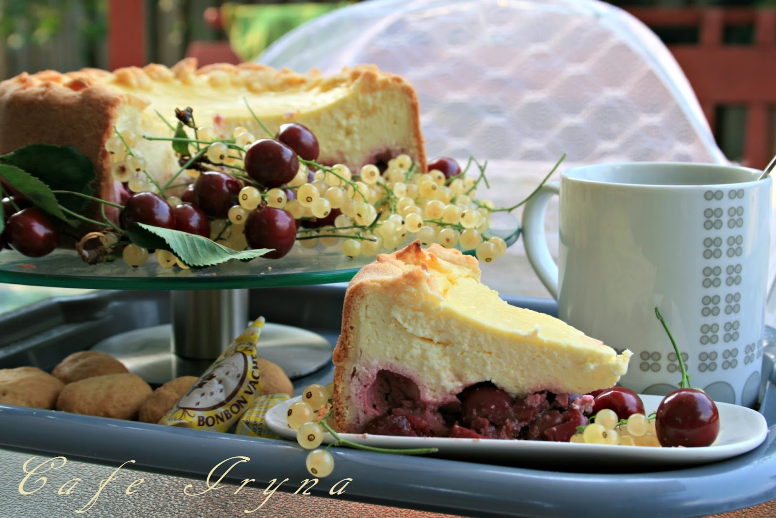 Выложить черешню на дно формы(на тесто),подсыпать крахмалом