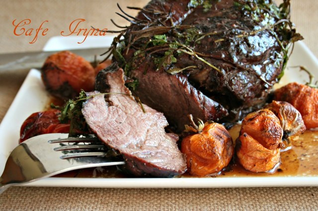 Готовое мясо выложить на блюдо,снять шпагат,нарезать на порции и -наслаждайтесь!