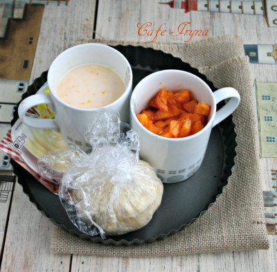 Хурма упорно не хотела дозревать,пришлось ее поторопить в виде начинки.Получилось вкусно,нежно и никакой терпкости…