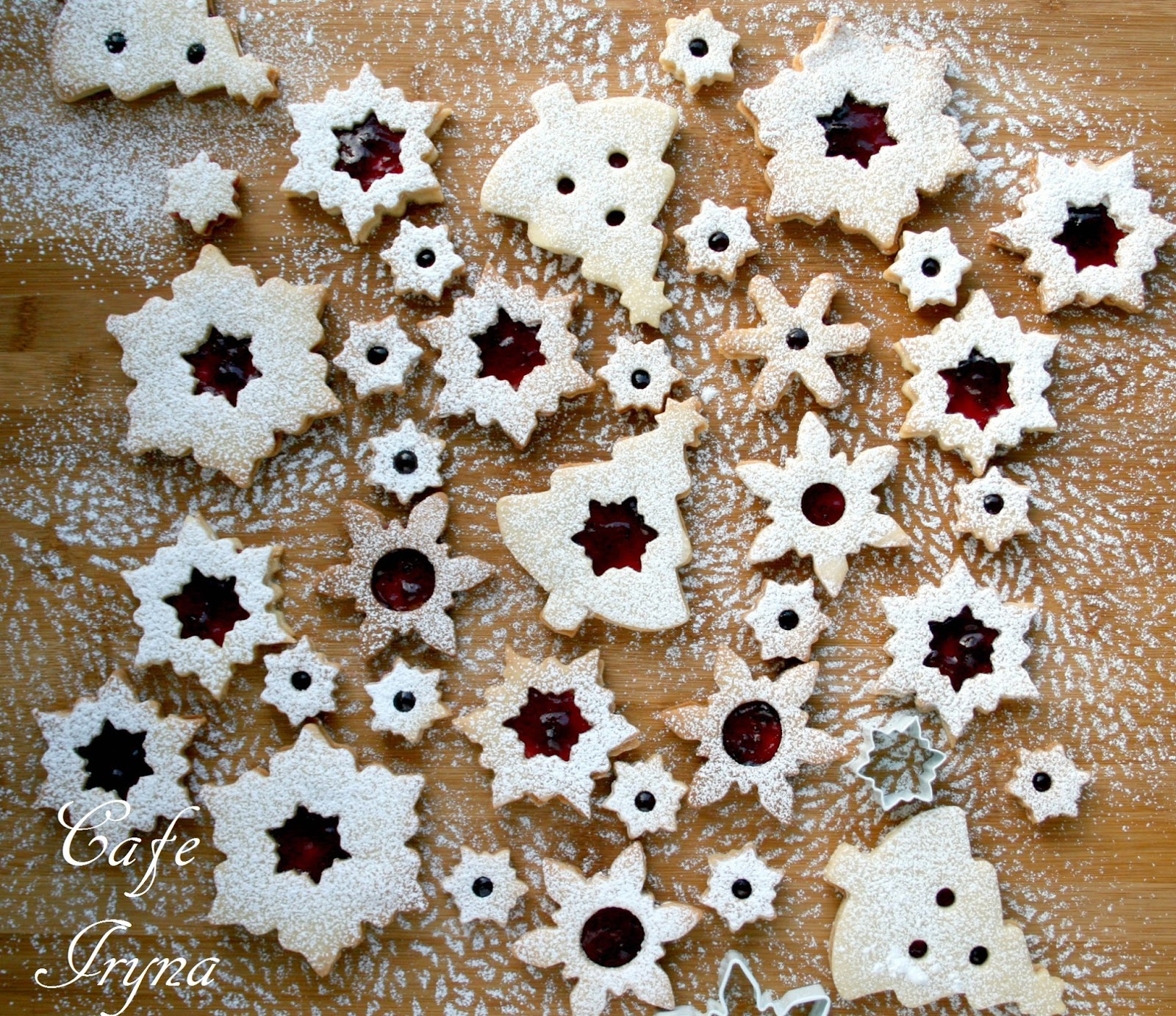 Верхние печеньки посыпать сахарной пудрой