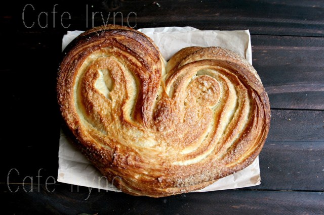 Разрезать тесто вдоль по центру,не доходя до «хвостика»,вывернуть обе половинки начинкой вверх