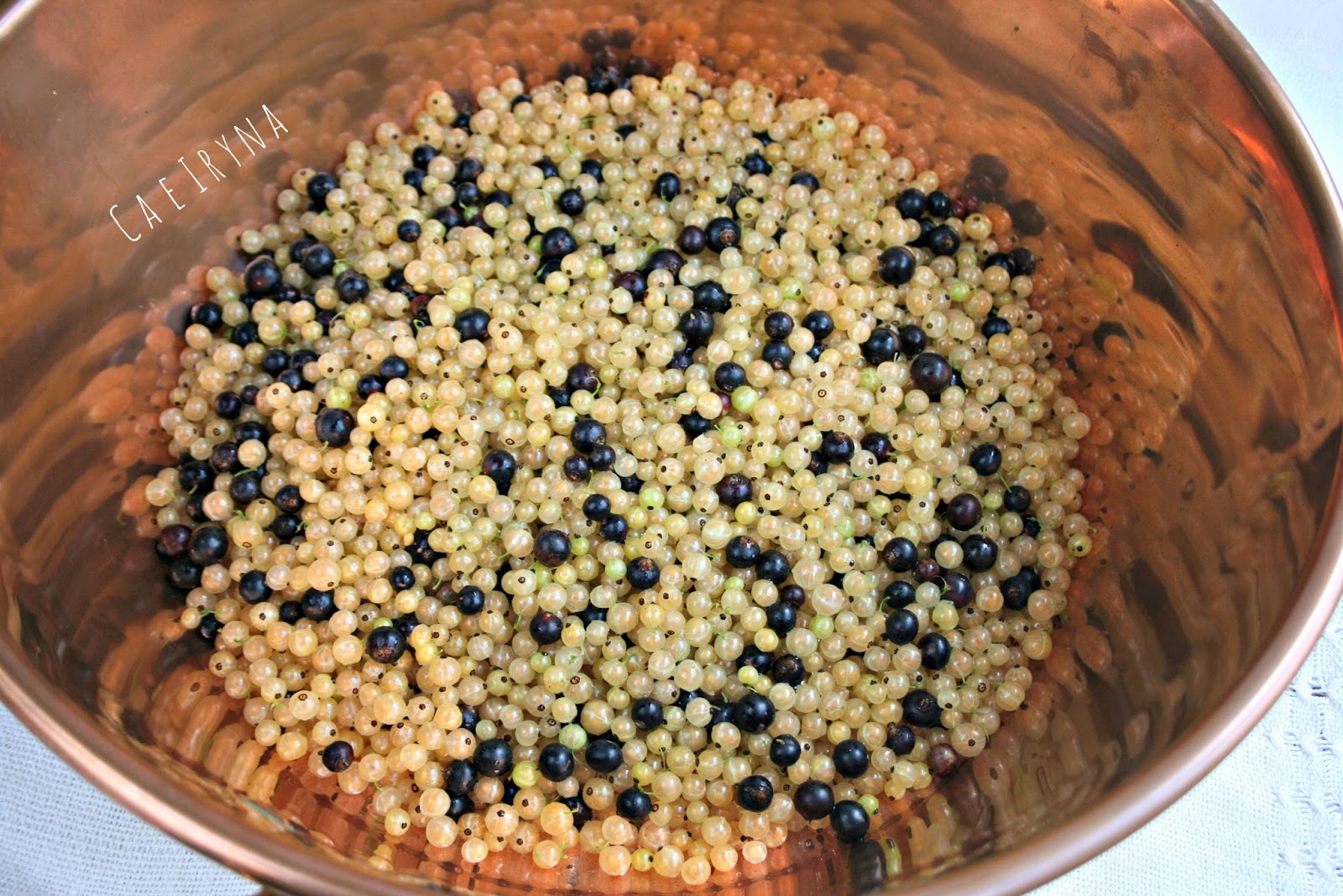 Ягоды берем в соотношении 3 части белой смородины и 1 часть красной ягоды